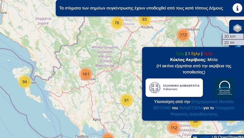 Στον χάρτη αποτυπώνονται τα 161 σημεία ασφαλούς συγκέντρωσης πολιτών στην Ήπειρο.